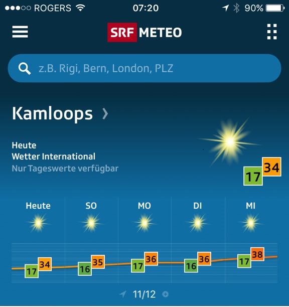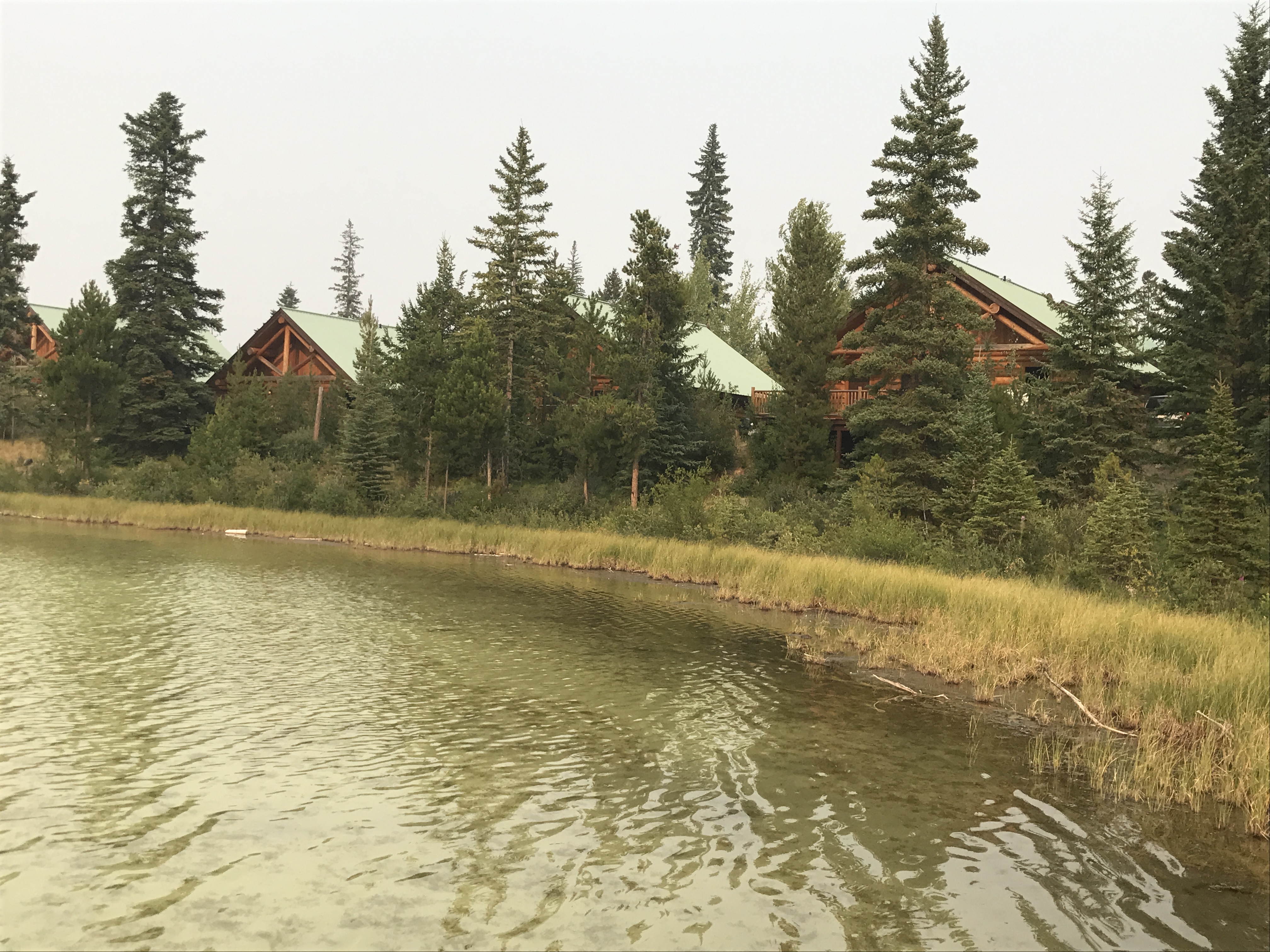 Wieder mal packen, frühstücken, und los gings. Mit Besichtigen von irgendetwas war es nicht weit her – der Waldbrand bei Kamloops vernebelte ziemlich von Beginn an alles. Zum Glück hatten wir nicht in Kamloops selber ein Hotel gebucht, denn hier war es wirklich schlimm mit der Rauchluft. Viele Leute liefen hier mit Atemmaske rum, und die Sonne war kaum sichtbar. Wir machten Einkauf im Safeway (geniale Auswahl; für Mia Gipfeli, Salami und Lioner) und fuhren noch 30 km nach Süden zum Lac Le jeune Provincial Park. Hier war es etwas besser mit dem Nebel, und wir hatten eine grosse Blockhütte direkt am Seelein, mit Ausblick auf Weisskopfseeadlernester. Die Kids interessierte dies weniger, denn für sie hatte es einen Indoorswimmingpool und einen Spielkeller. Am Badestrand am Lac Le Jeune war auch grosser Betrieb, sodass unser ruhiges Plätzchen schöner war. Wir machten feine Plätzchen mit schweizer Risotto und liessen den Tag bei Uno auf der Veranda ausklingen.