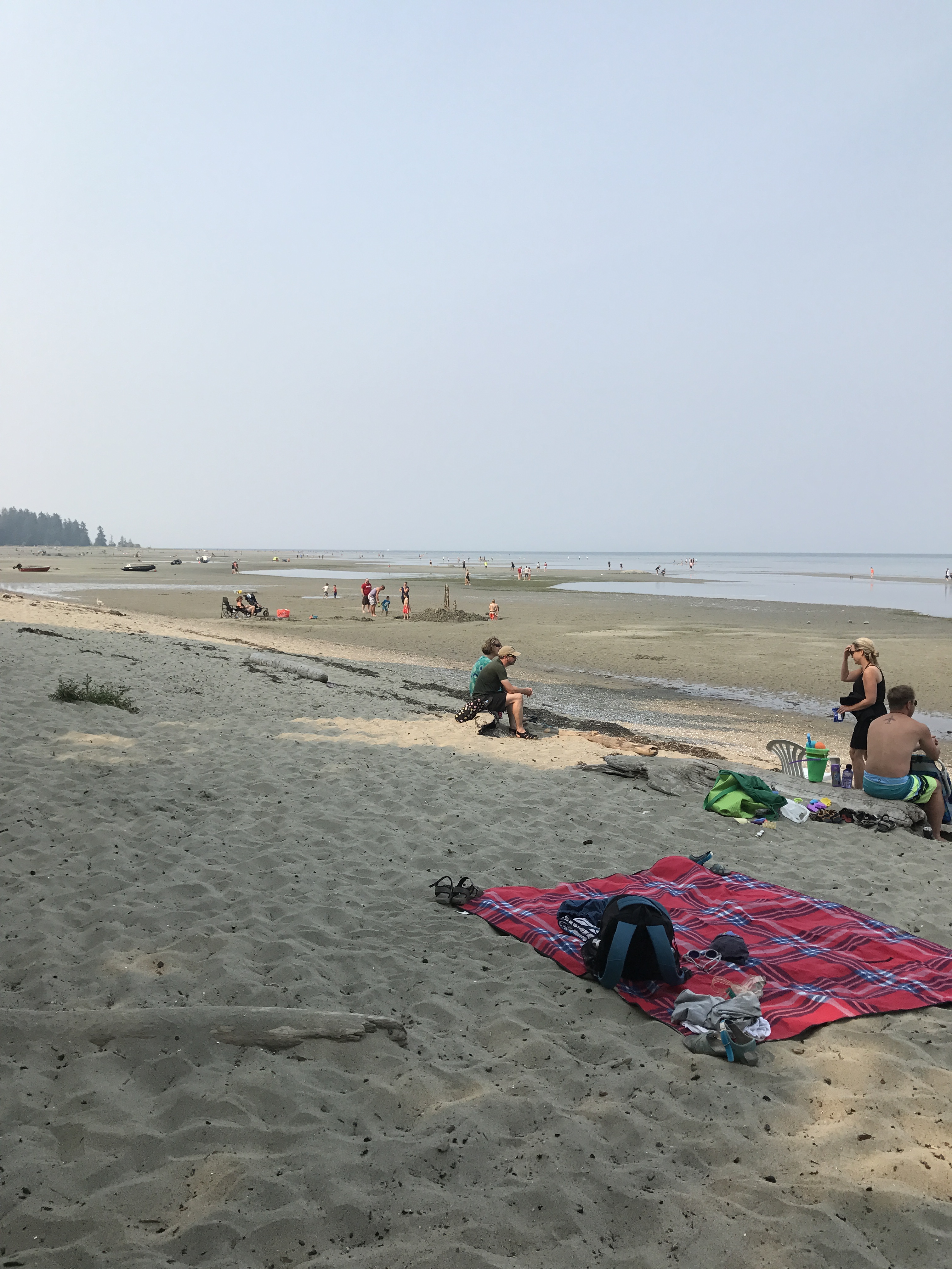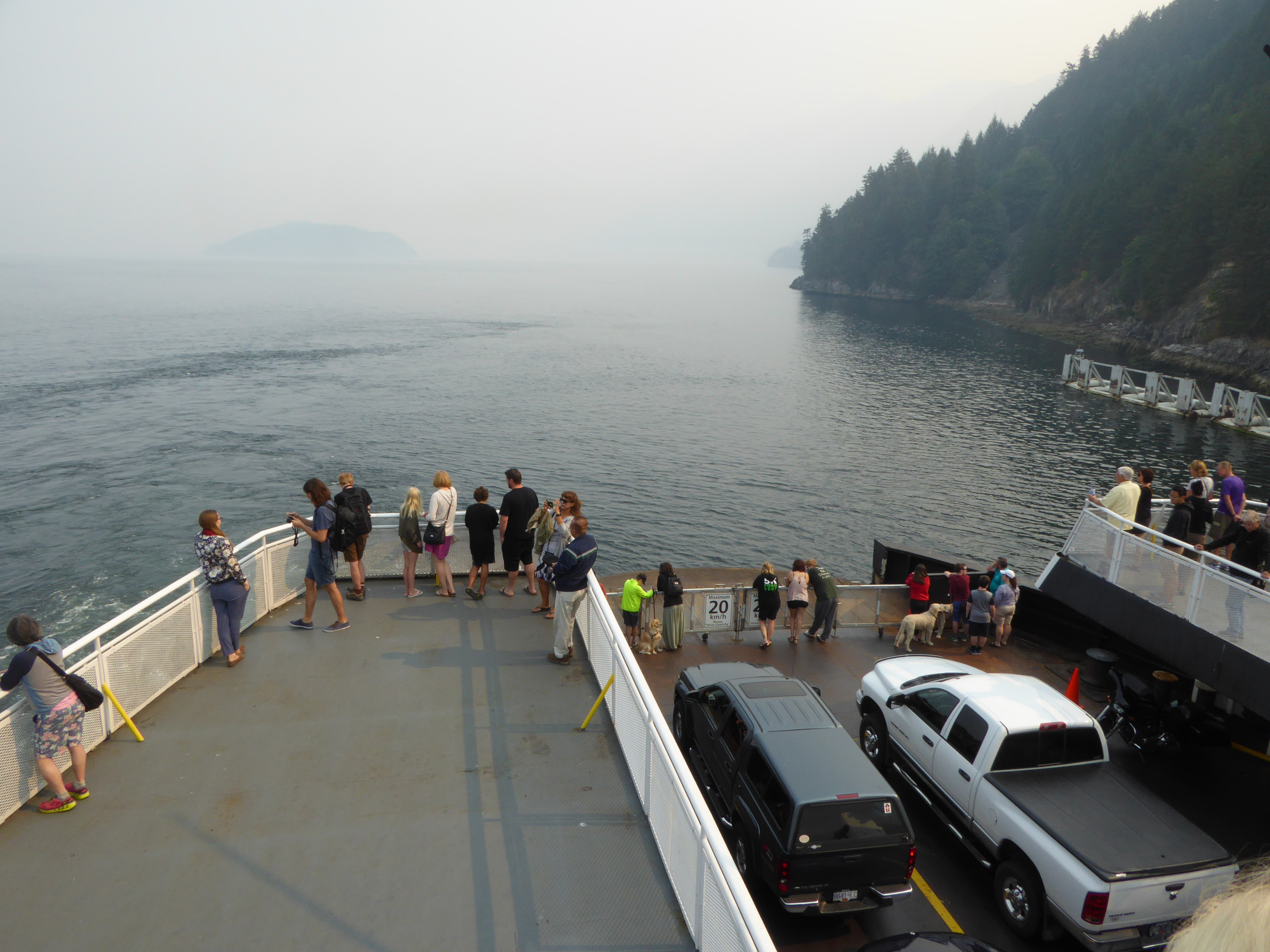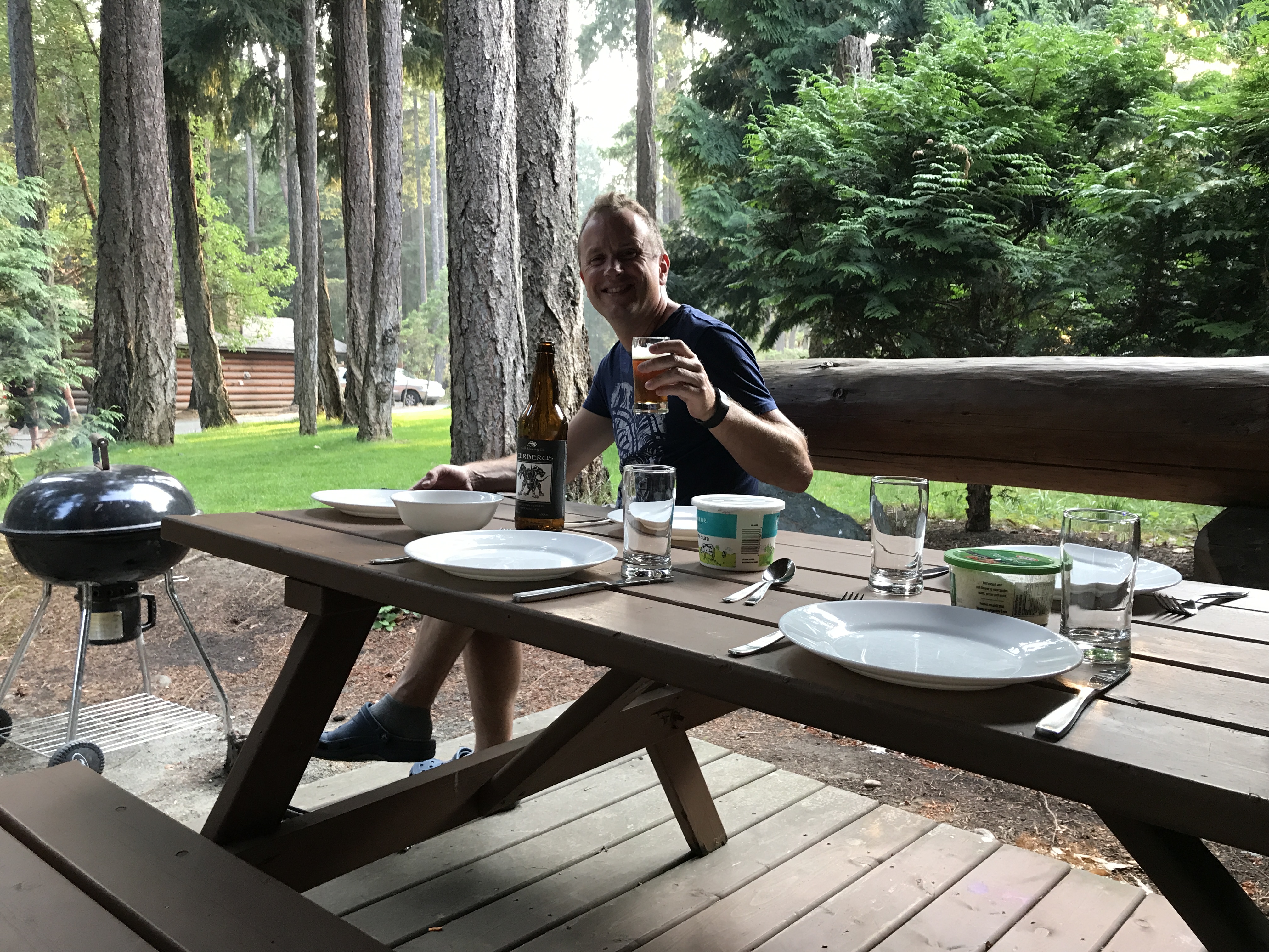 Heute war früh Aufstehen angesagt. Die Fähren nach Vancouver Island seien «very busy», da Feiertag sei. Wir fuhren vor 8h los und kriegten tatsächlich in Horseshoe Bay die Fähre um 9.55h – Glück. Nach 1.5h Überfahrt waren wir in Nanaimo und kurz darauf im Tigh Na Mara in Parksville. Eine schöne Blockhausanlage direkt am Meer. Der Strand und das Meer hier erinnern sehr an Föhr, mit viel Platz bei Ebbe und Wasser bis oben bei Flut. Krebse, viel Muscheln, Würmer… das Wasser ist warm, sodass sogar Martin nach dem Abendessen noch mit den Kids rein ging. Zum E:ssen gab es: ihr wisst es schon.